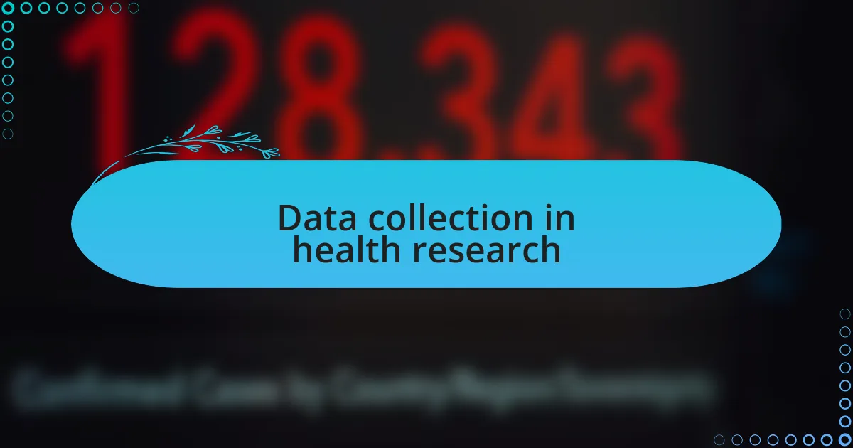 Collecting data in health research is a multifaceted process that requires careful planning and execution. I vividly remember my first encounter with survey design; constructing questionnaires felt like piecing together a puzzle where each question needed to resonate with the intended audience. I often ask myself, how can we ensure the questions we ask truly reflect the lives of those we’re studying?